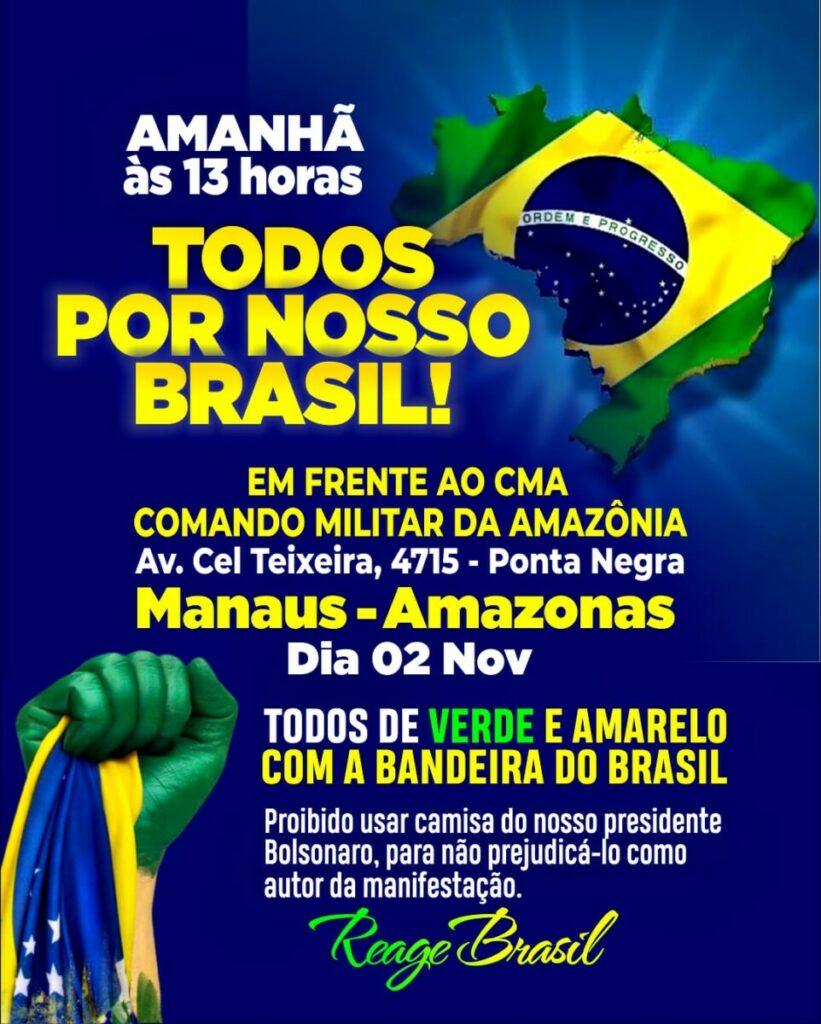 A concentração acontecerá em frente ao Comando Militar do Amazonas (CMA), partir das 9h, localizado na av. Coronel Teixeira, bairro Ponta Negra, zona Oeste de Manaus.