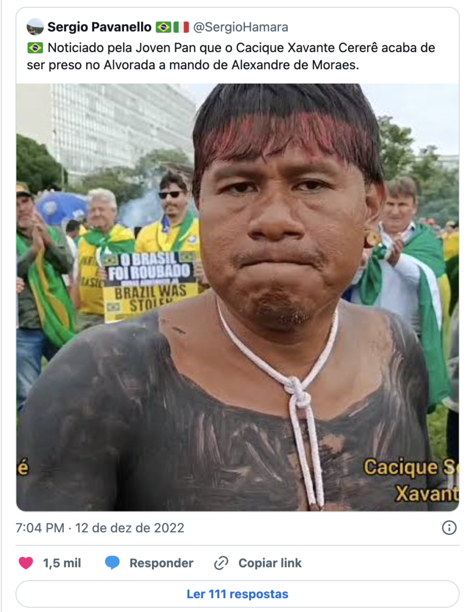 Brasil – Manifestantes tentaram invadir a sede da Polícia Federal nesta segunda-feira (12), na Asa Norte, bairro da região central de Brasília. O ato, segundo parte dos manifestantes, foi organizado como protesto à prisão do Cacique Tserere, um líder indígena que questiona o resultado das eleições deste ano.