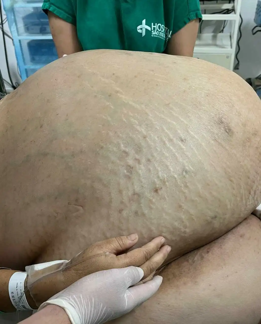 A paciente teria sido internada com quadro de falta de ar devido à volumosa tumoração abdominal. Foi realizada uma tomografia que identificou presença de volumosa massa que ocupava quase toda pelve e abdômen. Segundo o médico, também foram retirados o útero e ovários.