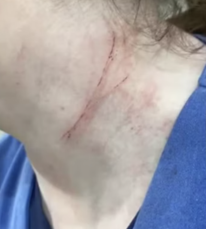Além de empurrar e esganar as profissionais de saúde, a agressora xingou e ameaçou as mulheres, que precisaram ser afastadas por orientação médica. Imagens obtidas pelo Metrópoles mostram que as enfermeiras sofreram ferimentos no pescoço e nas mãos.