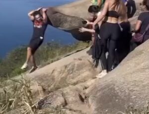 Brasil - O cenário pitoresco da "Pedra do Telégrafo", uma famosa atração turística que cria a ilusão de um abismo…