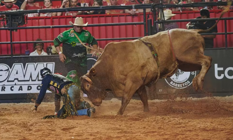 Brasil – O competidor Cleber Henrique Martins, de Cassilândia (MS), levou a pior na noite desta quinta-feira (15) na primeira etapa da final da Professional Bull Riders (PBR) Brasil na Festa do Peão de Barretos (SP).
