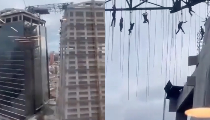 Perigo: estrutura de prédio desaba e funcionários ficam pendurados a 140 metros de altura; veja vídeo