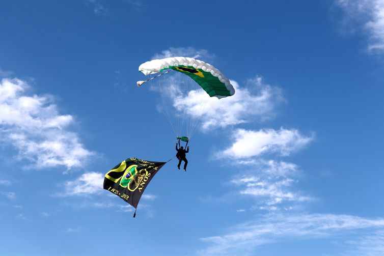 Brasil – Entre as atrações, o desfile da Banda Marcial dos Fuzileiros Navais, muito aplaudida pelo público. Os paraquedistas da Aeronáutica também prenderam a atenção dos presentes, com saltos perfeitos, todos no alvo.