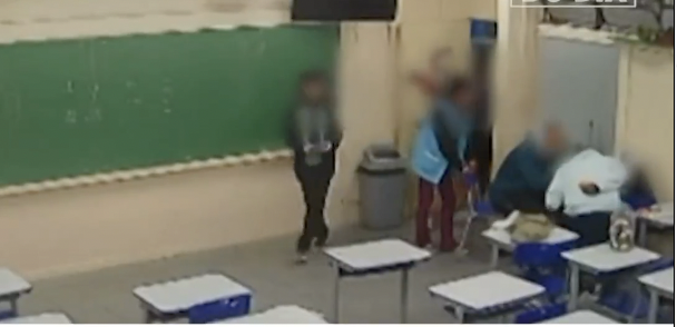 Além do aluno, outros dois funcionários da escola também presenciaram a ameaça, de acordo com o vídeo.