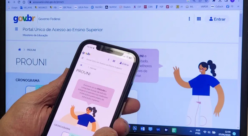 A inscrição é gratuita e feita somente pelo Portal Único de Acesso ao Ensino Superior, na parte do Prouni, com login da plataforma Gov.br.