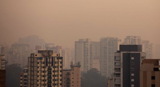 Na sexta (24), o céu já estava cinza em cidades da Grande São Paulo, refletindo a poluição.