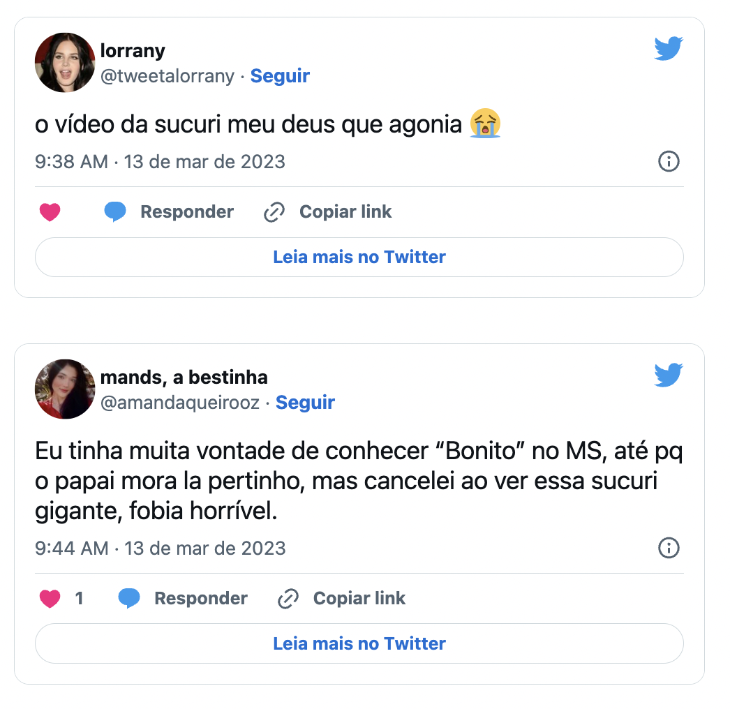 No Twitter, algumas pessoas aproveitaram para declarar sobre o pavor que têm do animal:
