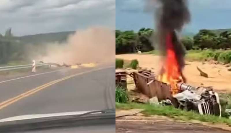 O acidente ocorreu na manhã desta terça-feira (13). Testemunhas relataram que os veículos trafegavam por uma ladeira quando colidiram frontalmente. Após o impacto, houve explosão e incêndio. As causas da colisão ainda estão sendo apuradas, e a polícia informou que, até o momento, não é possível precisar se as mortes ocorreram em decorrência do impacto ou do incêndio provocado após a batida.