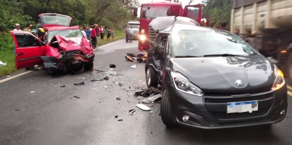 De acordo com a Polícia Rodoviária Federal (PRF), um dos veículos cruzou a pista e acabou atingido por outro carro que seguia no sentido contrário da rodovia. Eles bateram de frente.