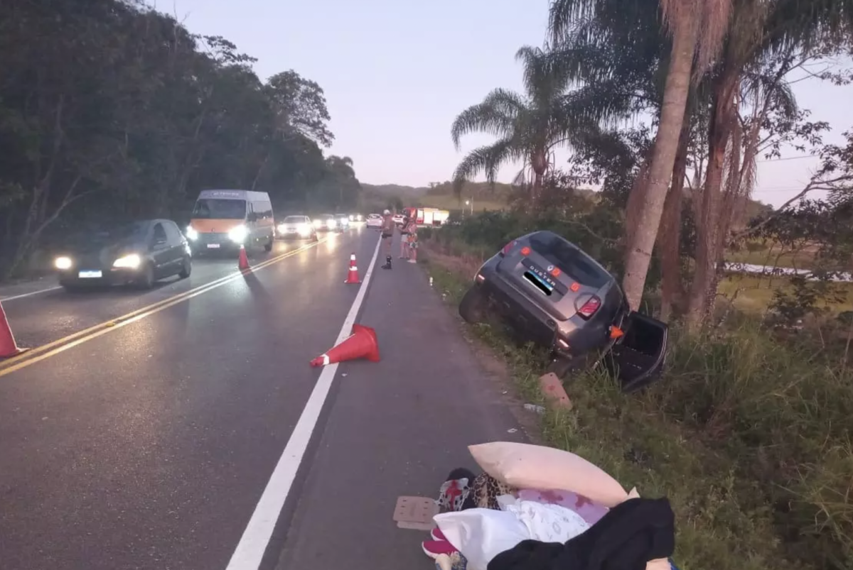 Segundo a Polícia Militar Rodoviária (PMRv), quando chegaram ao local, os policiais encontraram o carro fora da pista, batido contra uma árvore. A PMRv isolou o local e acionou os Bombeiros Militares do Paraná.