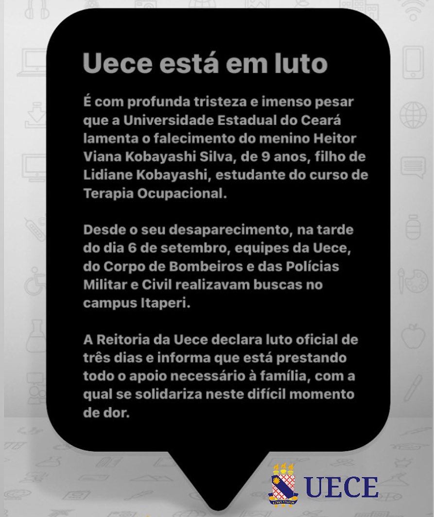 A notícia da morte de Heitor foi confirmada pela própria Uece, onde a mãe do menino estuda. A universidade recebeu a informação através da família da criança, que estava ansiosa por notícias do paradeiro de seu filho.