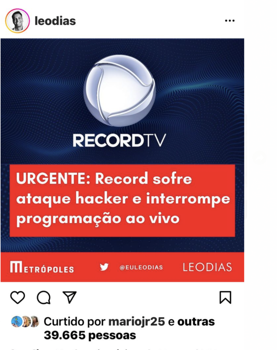 Urgente: Record sofre ataque hacker e interrompe programação ao vivo