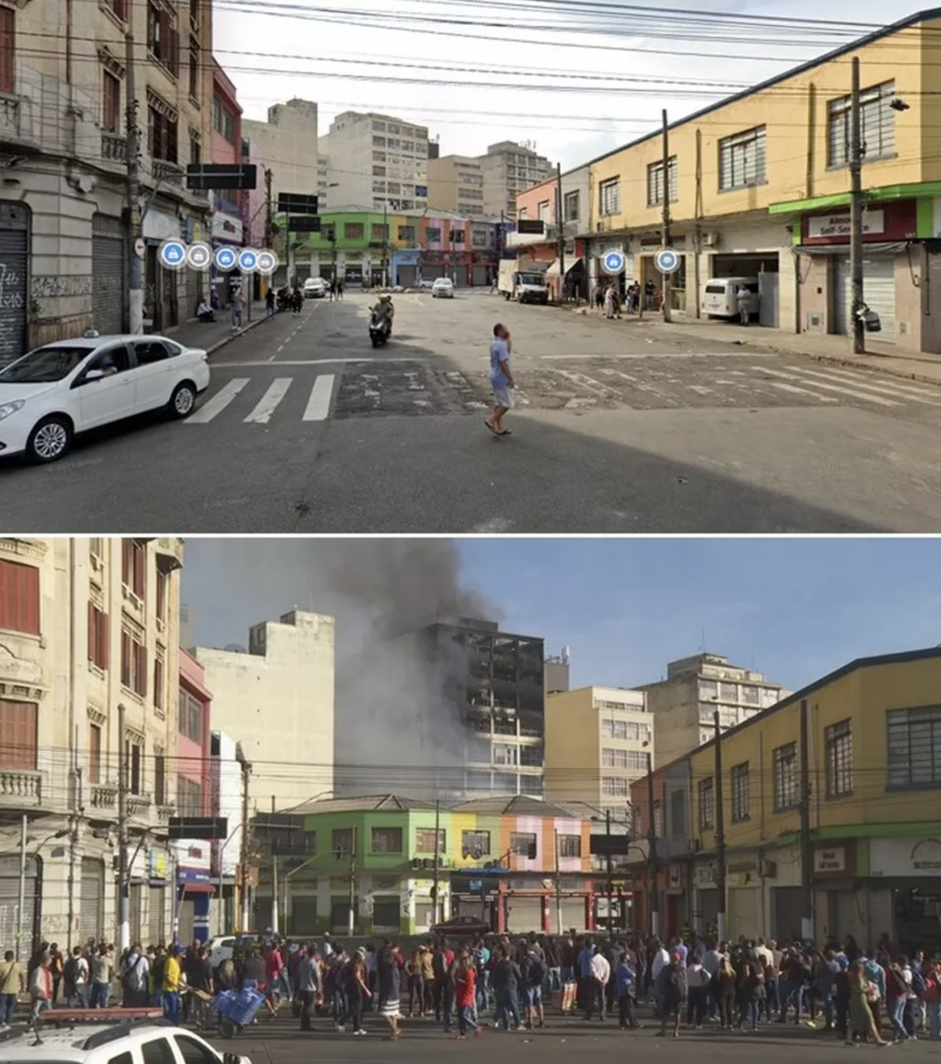 Segundo os bombeiros, o fogo começou por volta das 21h deste domingo (10), na área térrea de um prédio de dez andares, e se alastrou para outros três imóveis. Uma loja de artigos de papelaria e festa, que ficou completamente destruída, além de um prédio de seis andares, que corre risco de desabar, e uma igreja ortodoxa.