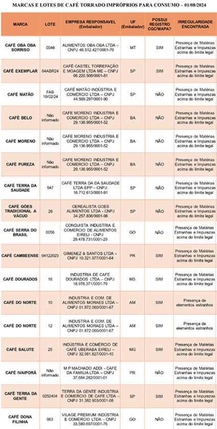 Esta não é a primeira vez que ele aparece em lista do órgão federal que destaca os cafés impróprios para consumo. No dia primeiro de julho deste ano, uma primeira relação já havia emitido um alerta para o Café do Norte, considerado um risco para a saúde pública.
