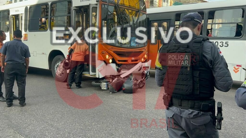 Acidente entre moto e ônibus deixa vítimas gravemente feridas no Centro; veja vídeos