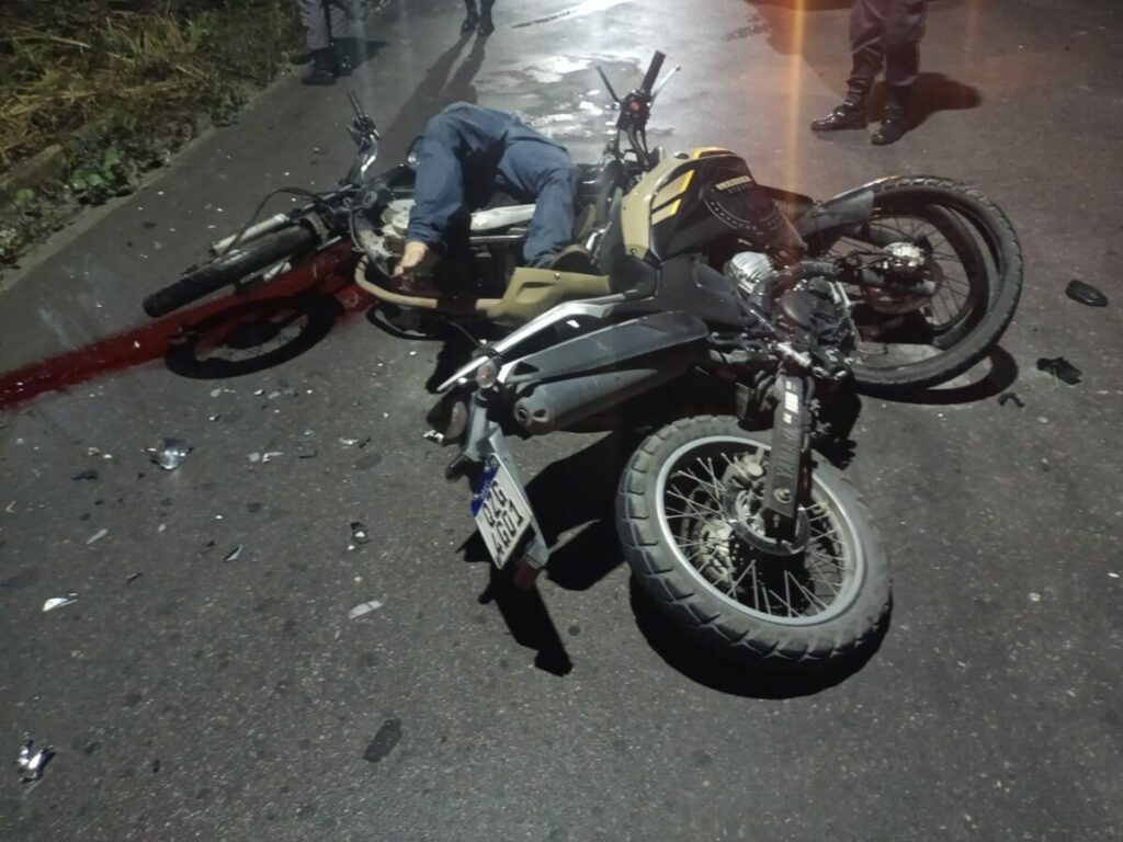 As motocicletas envolvidas foram identificadas como uma Lander, com placa QZG 4G01, de cor bege, e uma Fan 150, de cor preta.