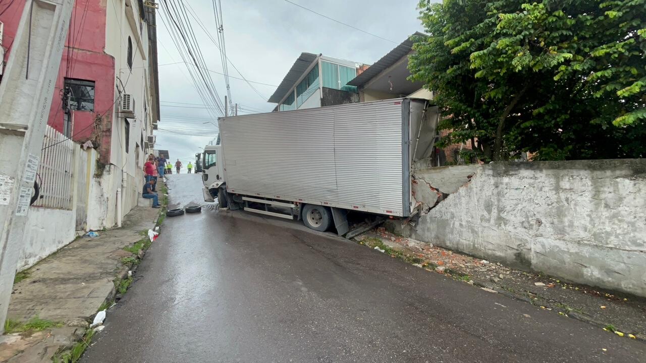 De acordo com informações preliminares, o veículo perdeu o controle ao tentar subir uma ladeira. Imagens registradas por moradores mostram que o caminhão não conseguiu completar a subida, perdeu força e desceu de ré antes de atingir a casa.