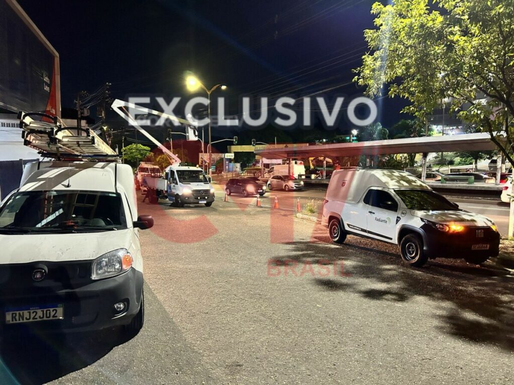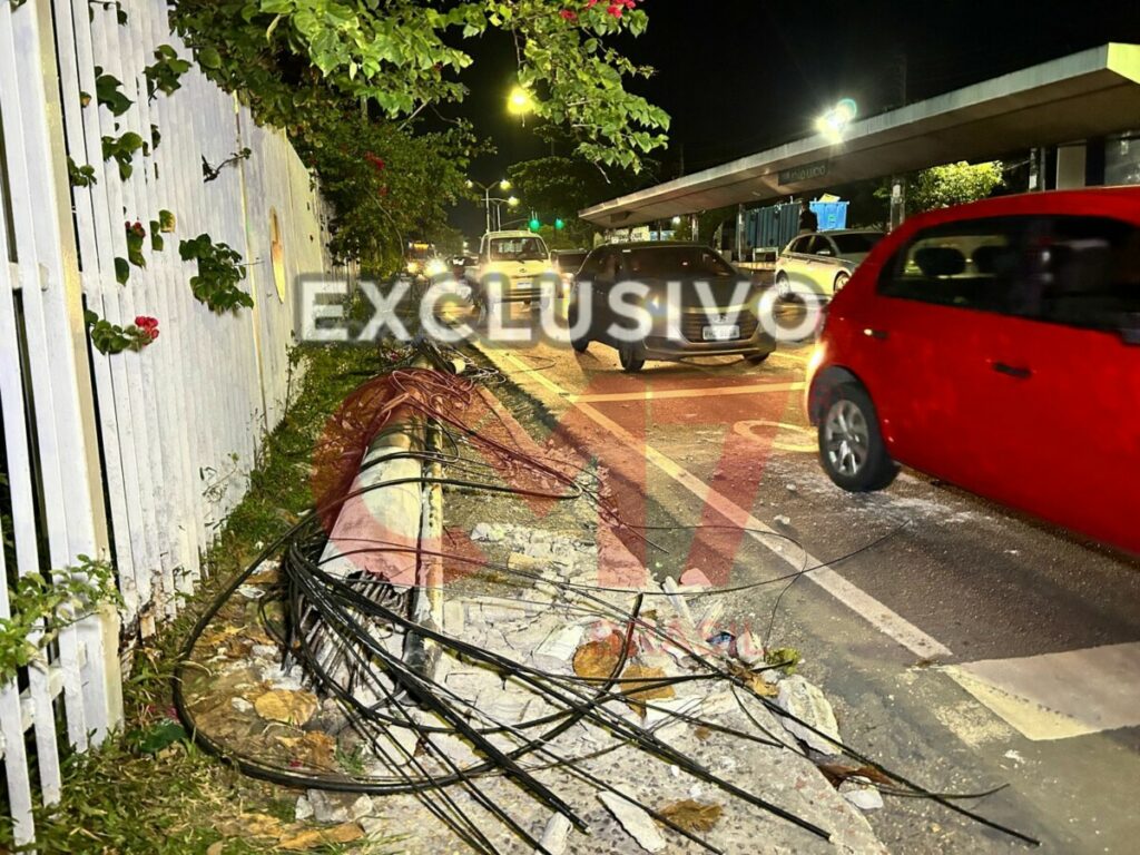 Na ocasião, o poste atingido acabou despencando sobre uma motocicleta e por pouco não caiu em cima de um motoqueiro de aplicativo e seu passageiro.