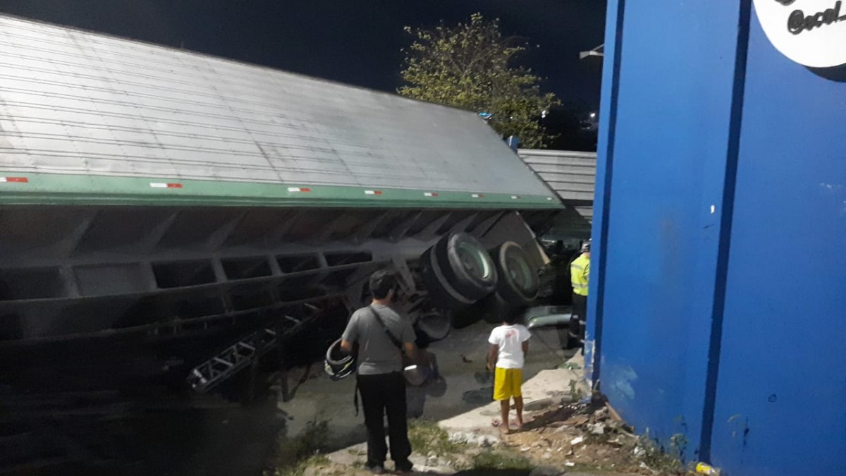 Manaus – Na noite desta segunda-feira (18), uma carreta com carregamento de ferros tombou e esmagou um carro na rua Bonsucesso, bairro Aleixo, zona Centro-Sul de Manaus.