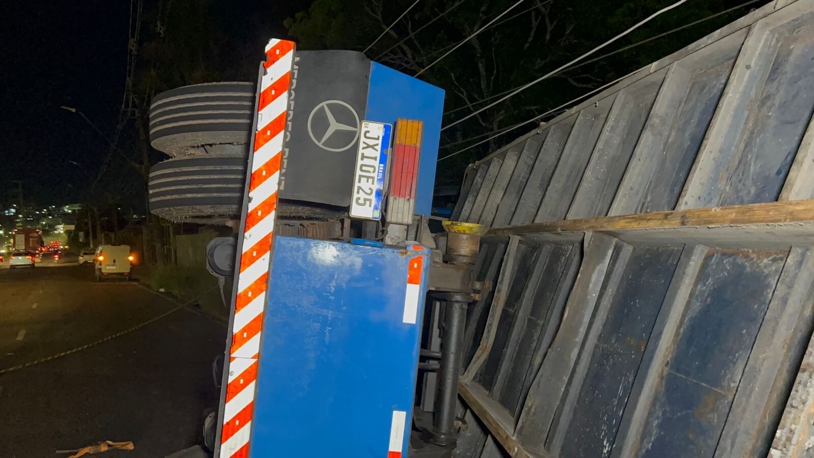 Manaus – Uma carreta tombou na tarde desta quinta-feira (16) na avenida Autaz Mirim, no bairro Zumbi, na zona Leste de Manaus.