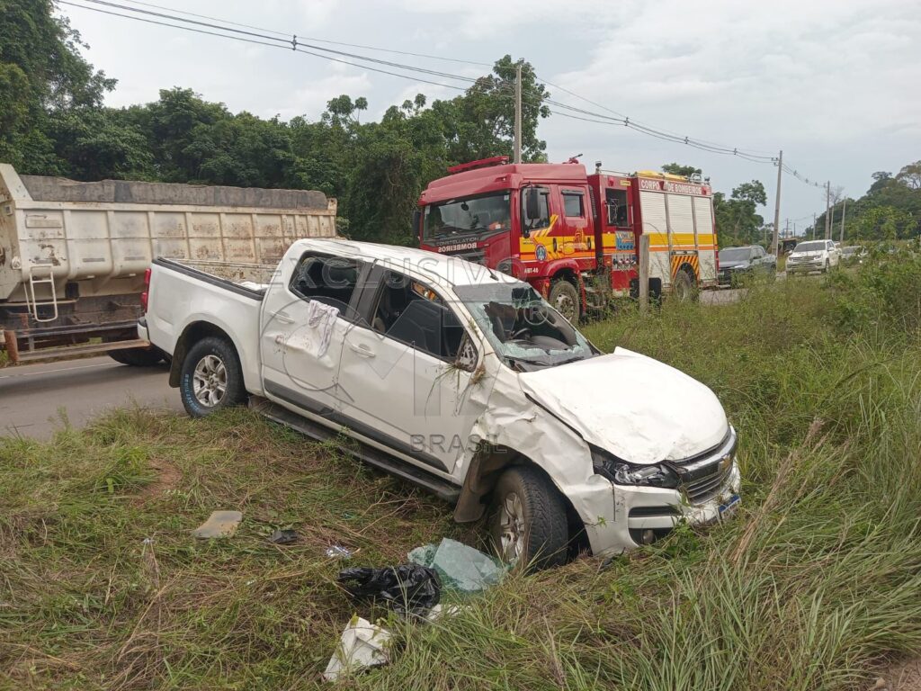 Manaus – Por volta das 13h desta quinta-feira (14), uma picape S10, placa PHD 2H43, conduzida por Fabiola Aguiar, moradora do bairro Flores, zona Norte de Manaus, capotou no km 8 da AM-070, durante o trajeto entre Manaus e a comunidade Lago do Limão, localizada no km 30, em Iranduba.