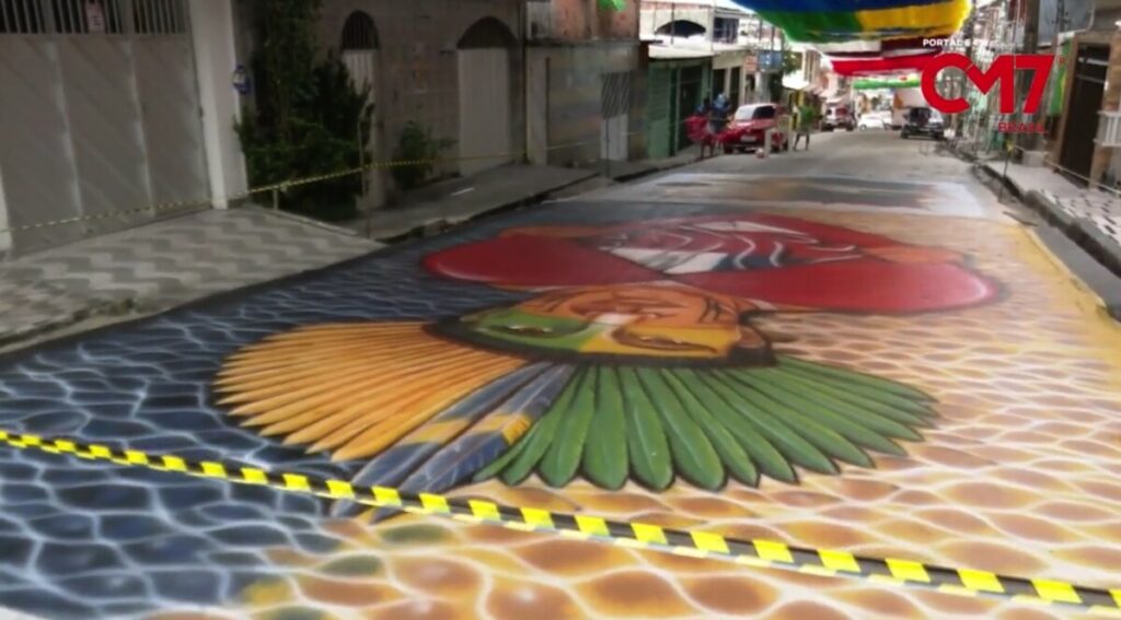 Ao olhar para cima, quem caminha pela rua se depara com desenhos da bandeira do Brasil, bandeira do Amazonas, o escudo da Confederação Brasileira de Futebol (CBF), bandeira do Qatar e de outros clubes de futebol.