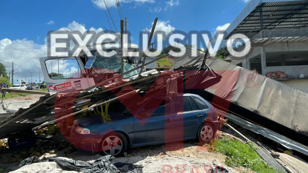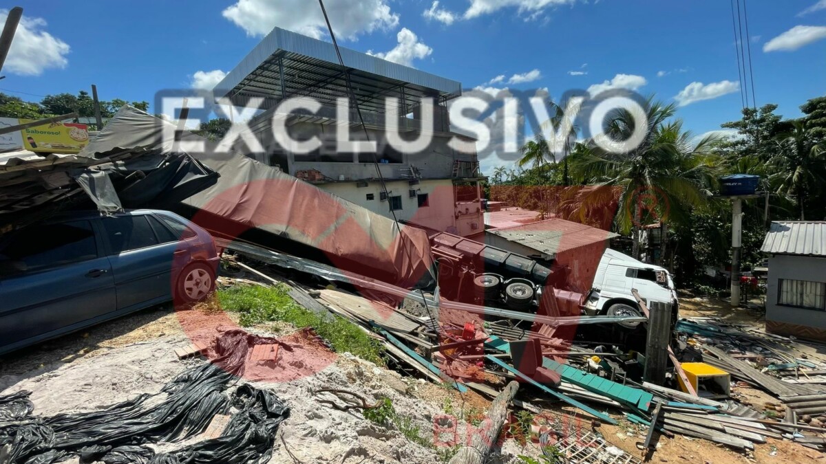 EXCLUSIVO: veja momento exato que carreta desgovernada bate em caminhão e invade casa no Turismo