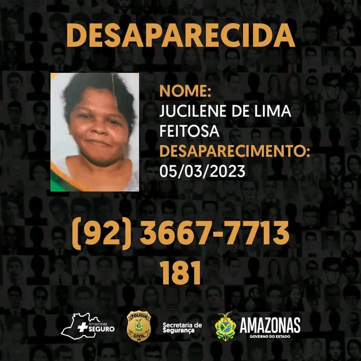 Jucilene de Lima Feitosa, 32, desapareceu no dia 5 de março deste ano, por volta das 7h30, quando saiu de sua casa, situada na rua Alberto Graciano, bairro no Colônia Santo Antônio, zona oeste.