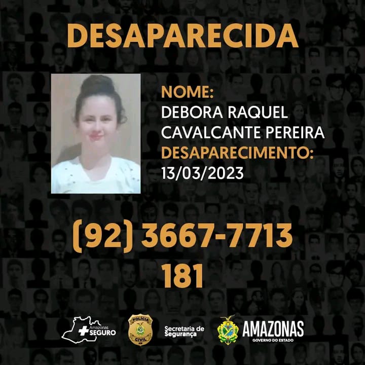 Debora Raquel CavalcantePereira, 18, foi vista pela última vez na segunda-feira (13/03), por volta das 20h, na rua José de Saramanjo, bairro Cidade de Deus, zona norte.