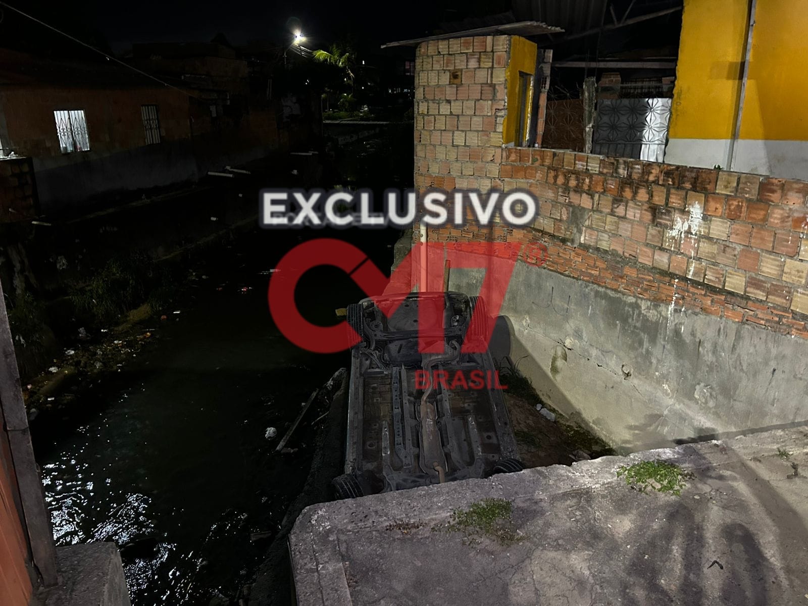 De acordo com testemunhas, o carro estava trafegando pela avenida quando, de repente, caiu dentro do ‘rip rap’ e capotou. Por pouco o veículo não parou dentro do igarapé.