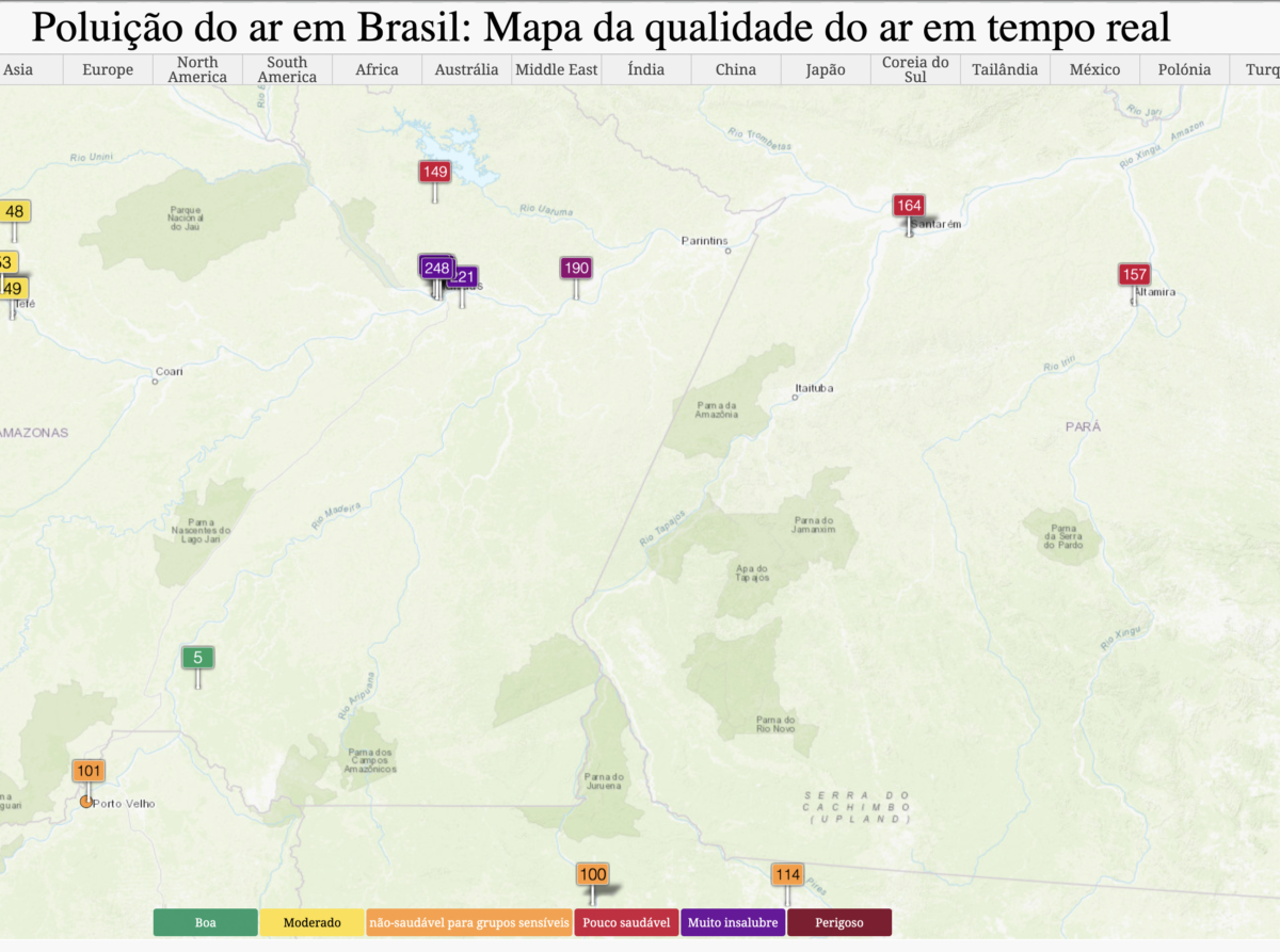 Essa é a triste realidade que tanto o povo da capital, como também do interior, está vivendo. De acordo com o site aqicn.org, que monitora a qualidade do ar em todo o mundo, Manaus está sendo a cidade com o ar mais poluído do Brasil.
