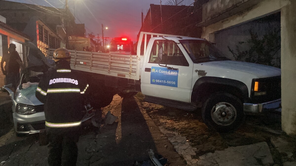 Motorista colid3 contra caminhão estacionado e fica pres0 nas ferragens no bairro São Geraldo
