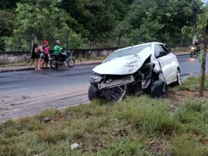 Manaus – Grave acidente na madrugada desta segunda-feira (3) chama a atenção dos moradores do bairro Tarumã, zona oeste da cidade. Um veículo, identificado como um Ônix branco de placa PHM 8603, colidiu violentamente com um poste de iluminação pública na Avenida do Turismo, próximo ao Condomínio Mediterrâneo.