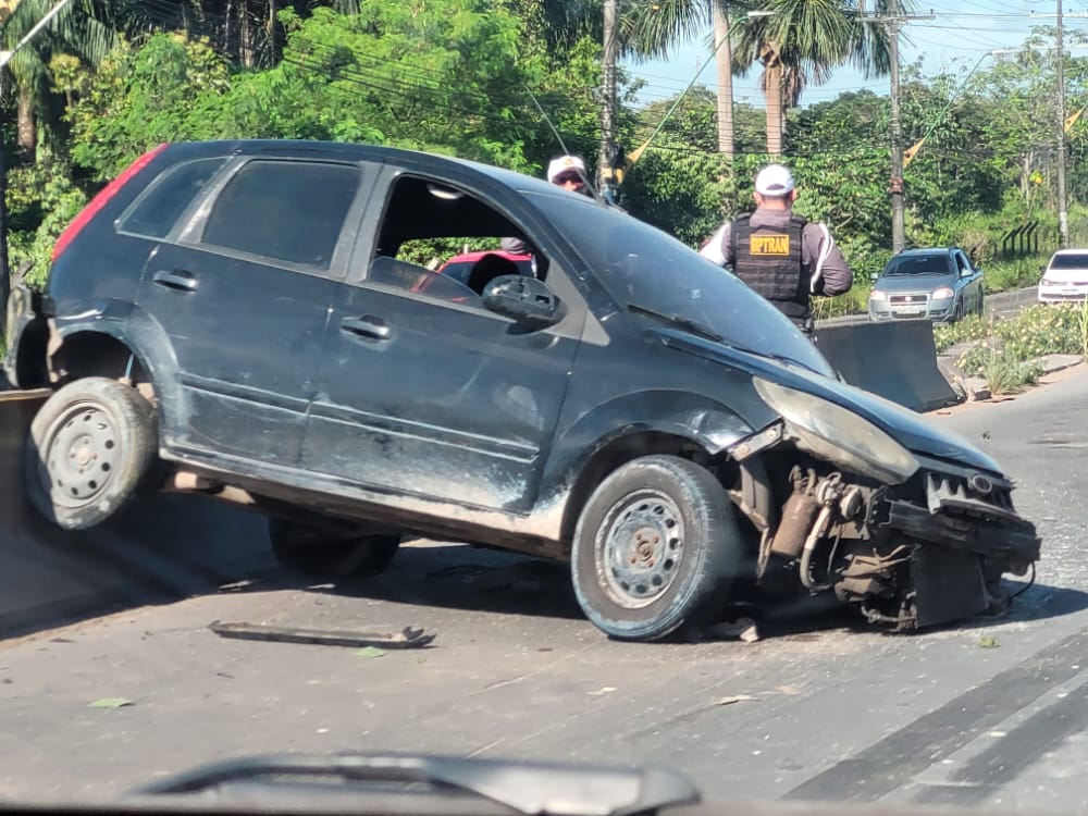 Manaus — Por volta de 10h25 da manhã deste sábado (14), um carro de passeio modelo Fiesta, se envolveu em um grave acidente de trânsito em um trecho da Avenida Torquato Tapajós.