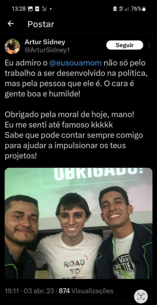 O deputado Federal também tentou negar a ligação entre ele e os rapazes, no entanto, há fotos do jovem político junto aos seus militantes nas redes sociais. Um deles é professor e integrante da Ong Politize!, de viés esquerdista. Veja: