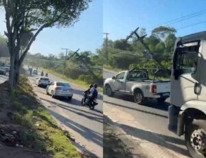 Manaus - Um poste na avenida do Turismo, no bairro Tarumã, zona Oeste de Manaus, tombou parcialmente na manhã desta…