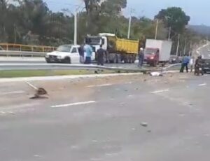 Urgente: carreta sem freio causa acidente e mat4 duas pessoas no Tarumã; veja vídeos