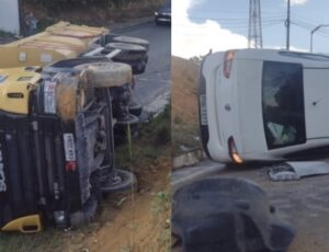 Grave acidente entre caçamba e carro deixa vítimas feridas na av. do Turismo