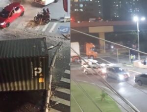 Manaus - O container de uma carreta despencou de um viaduto na noite desta sexta-feira (2), na avenida Mário Ypiranga…