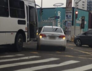 Atenção: acidente entre carro e ônibus deixa trânsito infernal no Adrianópolis