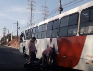 Motocicleta vai parar debaixo de roda de ônibus em acidente na av. das Torres