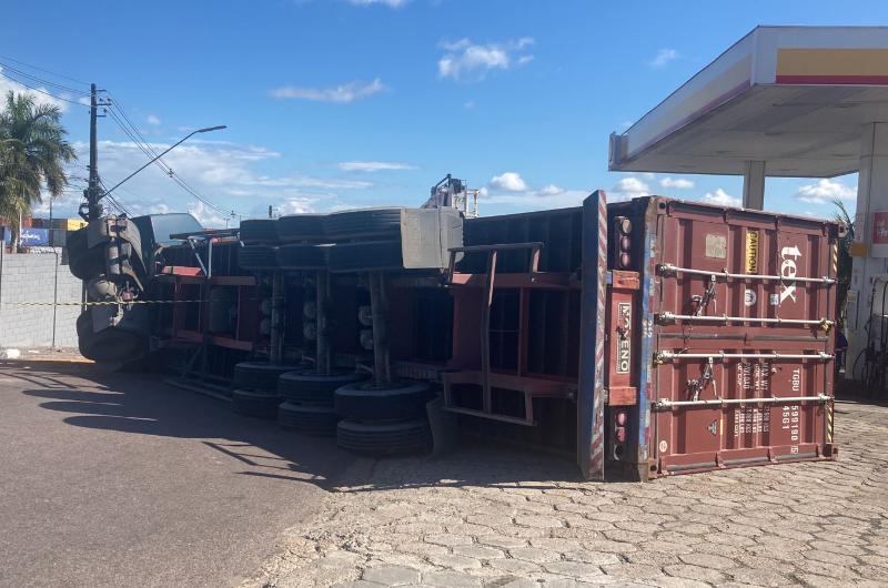 Carreta tomba no bairro Colônia Oliveira Machado e deixa trânsito congestionado