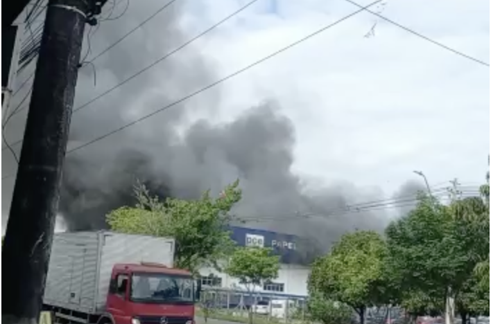 Atenção: avenida Autaz Mirim é interditada devido a incêndio em fábrica de papel em Manaus