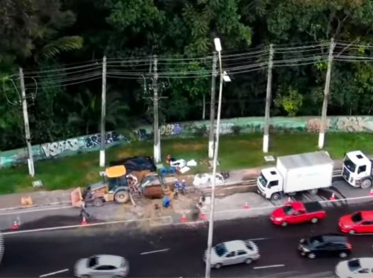 Manaus - Na manhã desta terça-feira (5), uma cratera se abriu no trecho da rotatória do bairro Coroado com a…