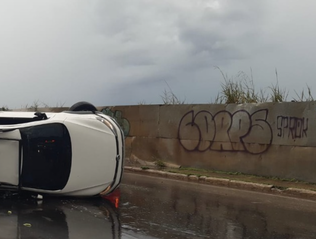 Manaus - Um carro capotou durante a forte chuva da tarde desta segunda-feira (7), na avenida do Turismo, bairro Tarumã,…