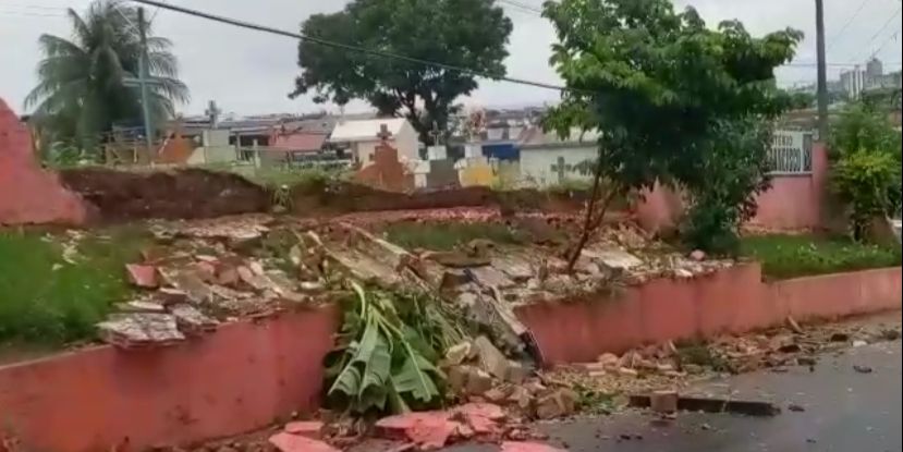 Manaus - O muro do cemitério São Francisco desabou durante a forte chuva da tarde desta quinta-feira (30), no bairro…