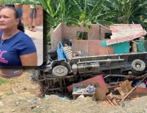 Dona de casa chora ao ver que caminhão atingiu sua residência em Manaus: ‘Não sobrou nada’; veja o vídeo
