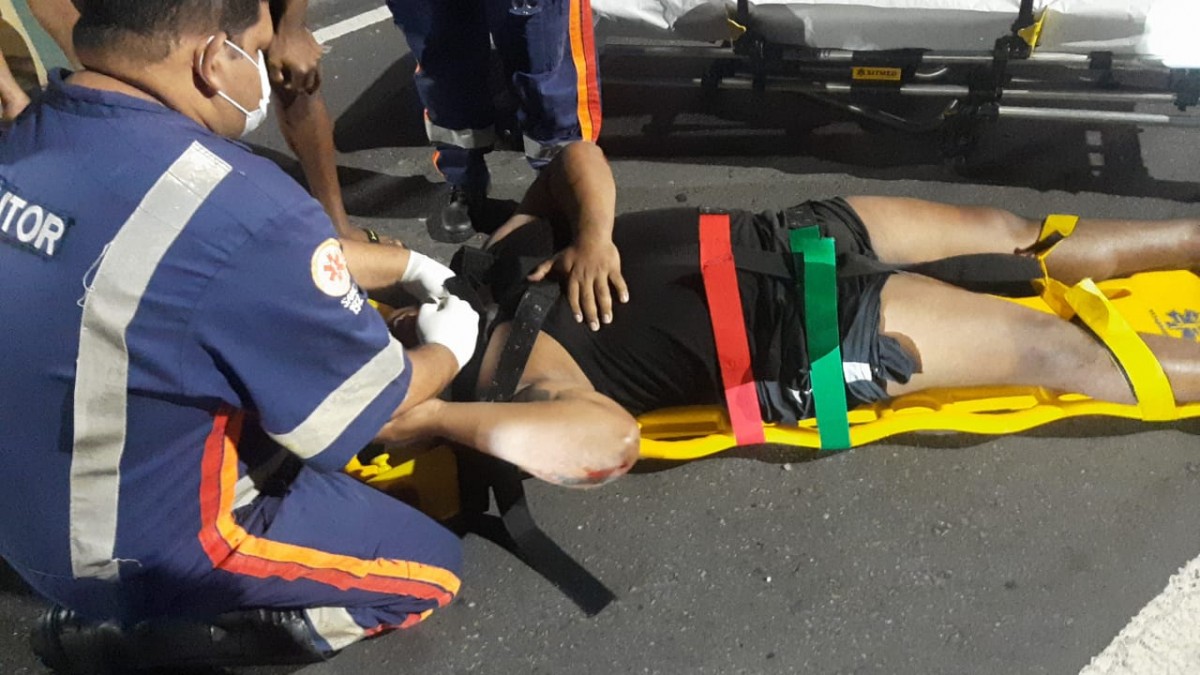 Pneu de moto estoura e homem sofre grave acidente na avenida das Torres; veja vídeo