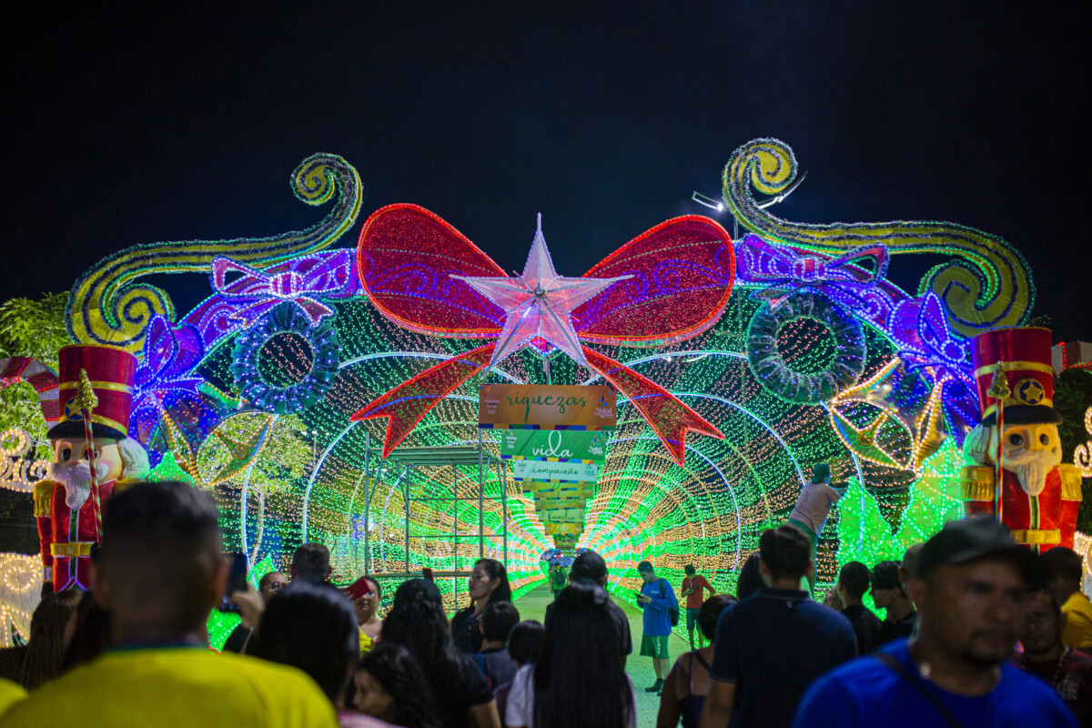 Manaus – Ponto turístico e destino certo para aproveitar o feriadão da Proclamação da República do Brasil, comemorado nesta terça-feira (15), o Complexo Turístico Ponta Negra é um dos locais instagramáveis para quem busca curtir a decoração natalina da cidade em mais uma edição do “Natal das Águas – Luz da Esperança”, da Prefeitura de Manaus, que enche de luzes, cores e magia o ambiente. A previsão é que toda a ornamentação do complexo esteja finalizada até o dia 20.